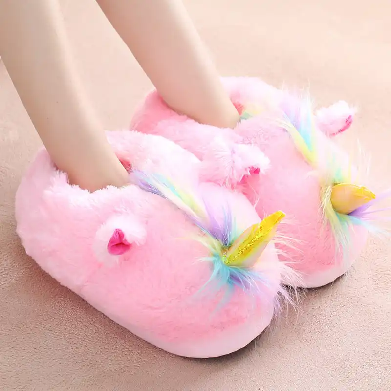 Winter cute cartoon unicorn home fluffy home slippers