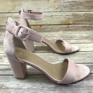 Allegra K Blush Pink Faux Suede Open pink shoes block heel