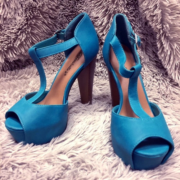 Breckelles Turquoise Peep Toe Chunky turquoise chunky heels