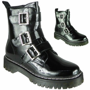Ladies Ankle Boots Womens Goth Punk shiny chunky boots