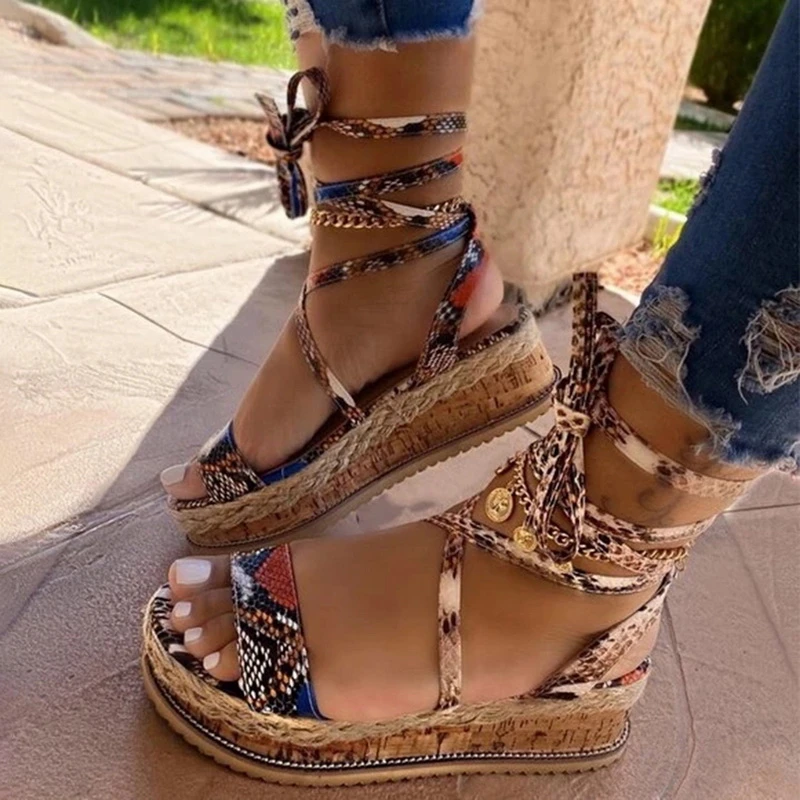 2020 Summer Women Snake Printed Sandals wholesale platform heels