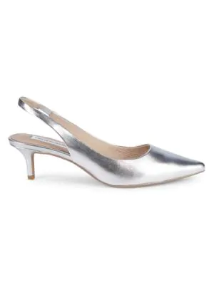 Saks Fifth Avenue Daria Leather Kitten silver kitten heel slingback shoes