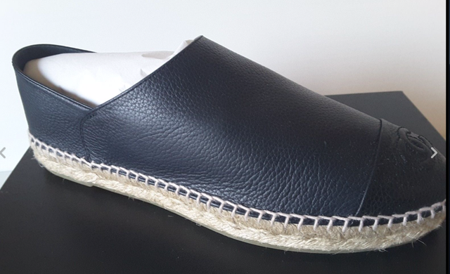 CHANEL Navy Blue Calf Leather navy blue flat shoes