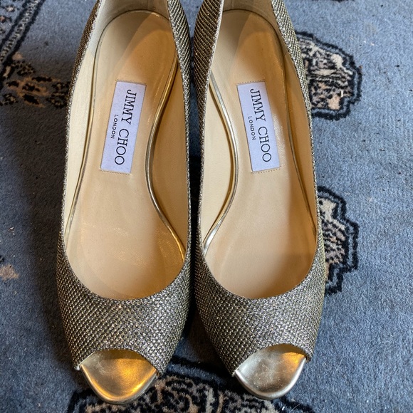 Gold Midheel Opentoe Pumps | Poshmark jimmy choo mid heel