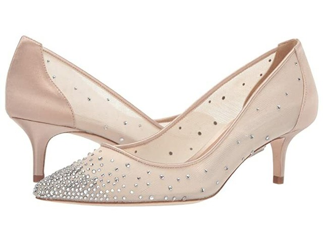 Satin Crystal Covered Kitten Heel PUMPS badgley mischka ginny