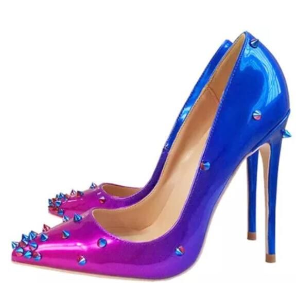 2018 New Women Spike Stud High Heels purple bottom heels