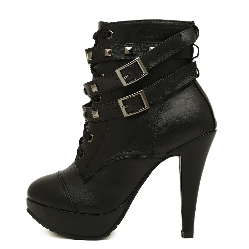 Black Sexy Rivets High Pencil Heel pencil heel ankle boots