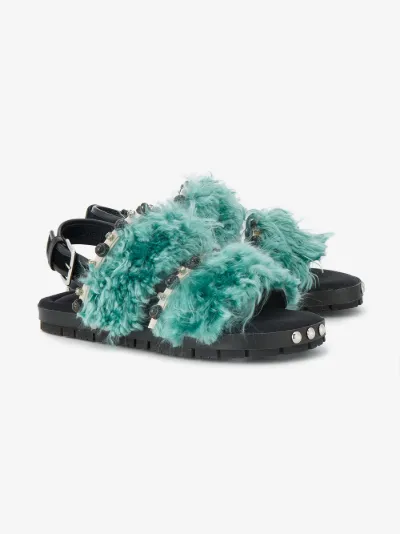 Marni Blue fur Beaded sandals | Browns marni fur sandals
