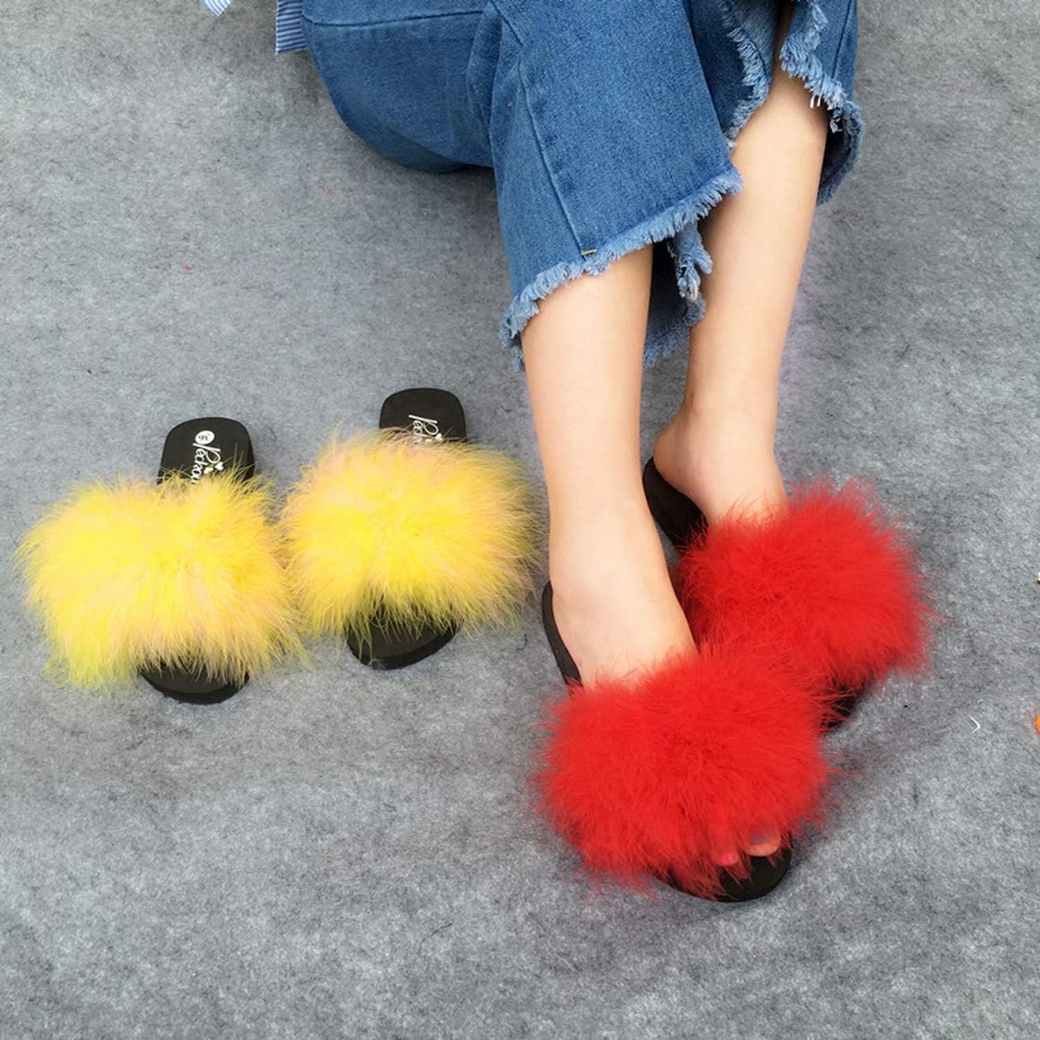 Fur Slide Flip Flops Women MB Ostrich ostrich feather slippers
