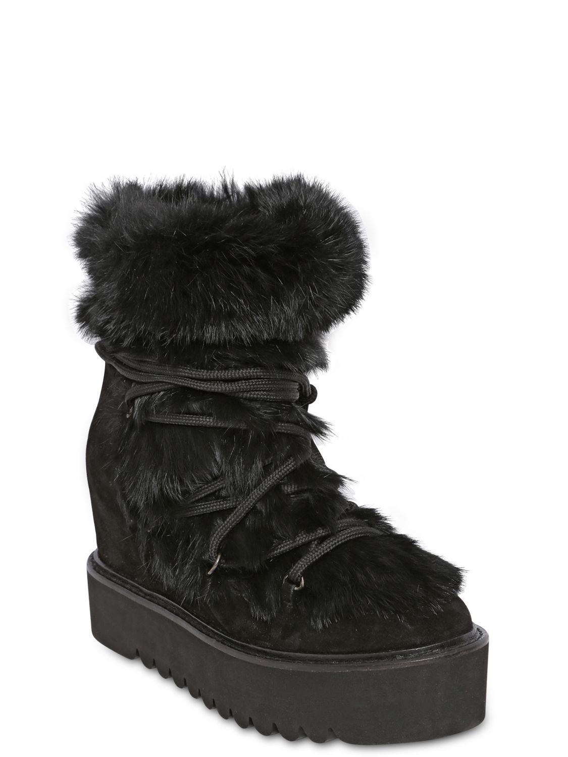 Lapin Fur Wedge Boots in Black paloma barcelo fur boots
