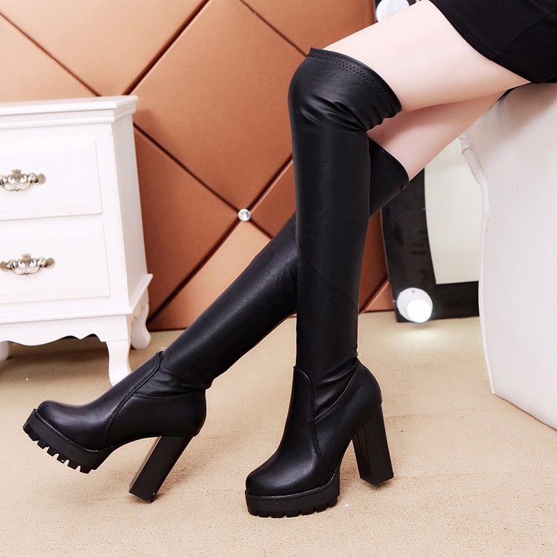 Hot】2020 Autumn/Winter s new chunky waterproof knee boots