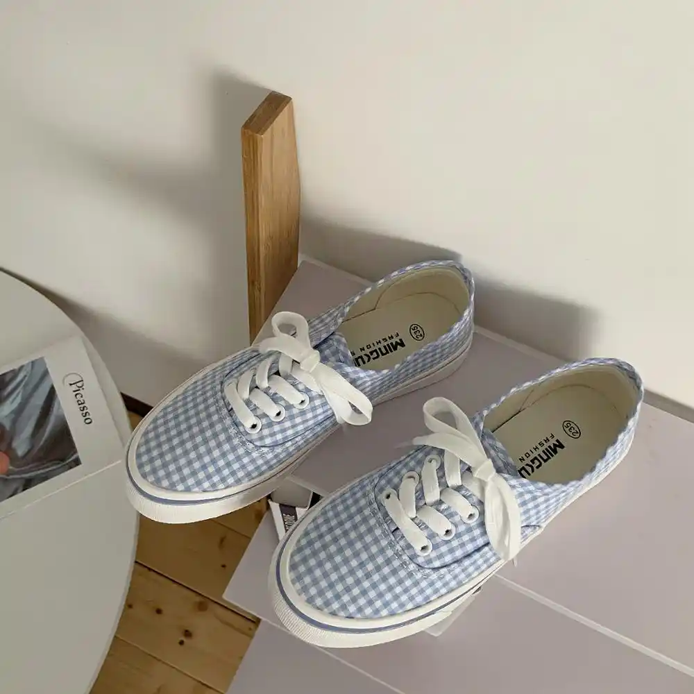 Blue plaid canvas shoes female 2020 new blue plaid shoes