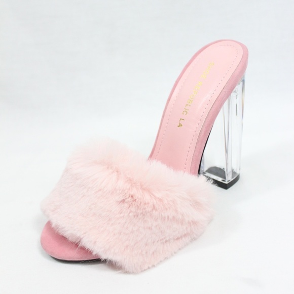 Marabou Fur Slide Slip Clear Lucite shoe republic la clear heels