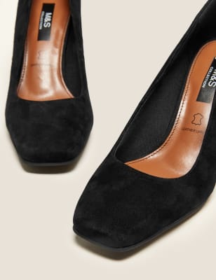 Suede Block Heel Square Toe Court Shoes square toe court shoes