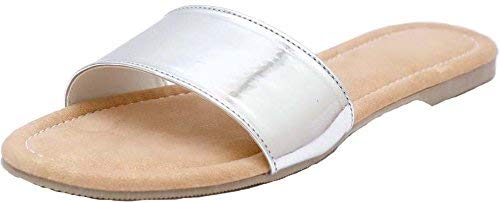 Buy Foot Wagon Beige Flats|Silver single strap slippers