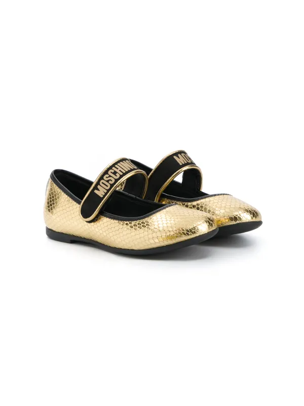 Shop gold Moschino Kids snakeskin moschino ballerina shoes