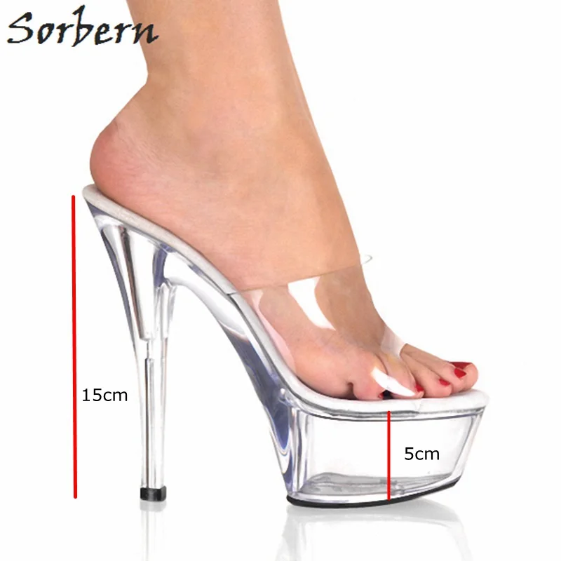 Sorbern White Clear Heels Slippers Open white shoes with clear heels