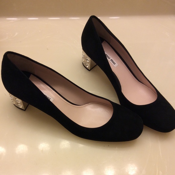 miu miu pumps with jeweled heels