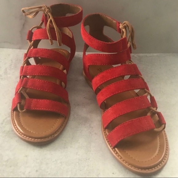 Frye Blair Side Ghillie Gladiator Red red gladiator flat sandals