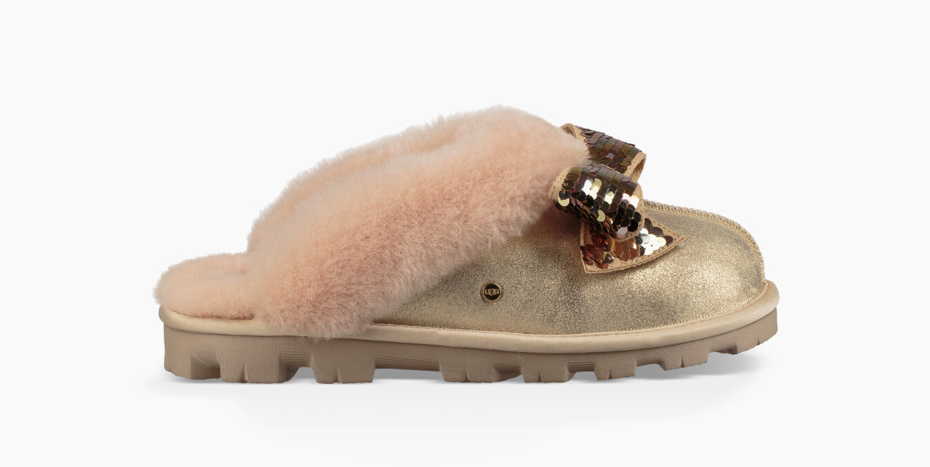 UGG COQUETTE SEQUIN SPARKLE BOW GOLD ugg coquette sequin bow slipper