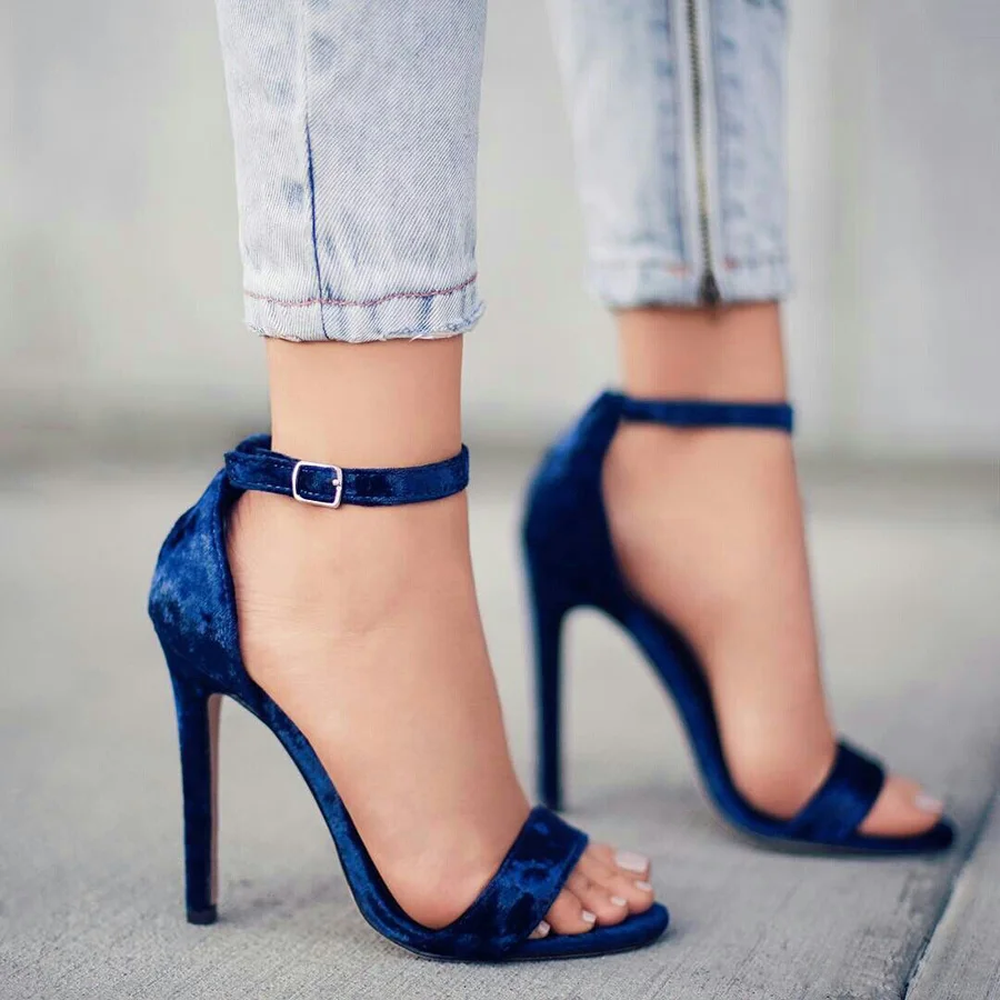 Luxury Designer Velvet Sandals Women two strap heeled sandals