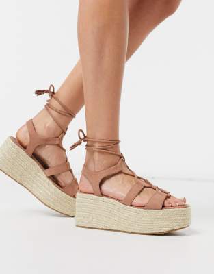 Pull\u0026Bear wrap tie flatform sandals in flatform sandals tie up