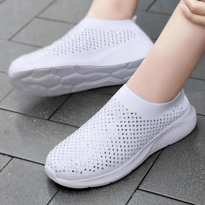 Swomen shoes woman flats casual slip on women muffin rhinestone new crystal platform sneakers