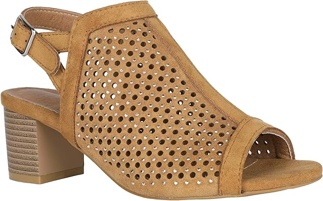 Womens Perforated Heeled Sandals Open perforated open toe sandal
