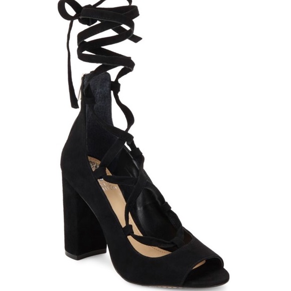 Vince Camuto Black Suede Lace Up Heels vince camuto lace heels