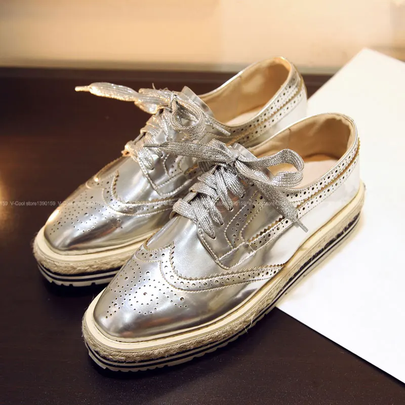 100% Genuine cow leather brogue casual designer oxford shoes womens
