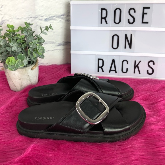 Topshop Romeo Buckle Black Slide Sandal topshop romeo sandals