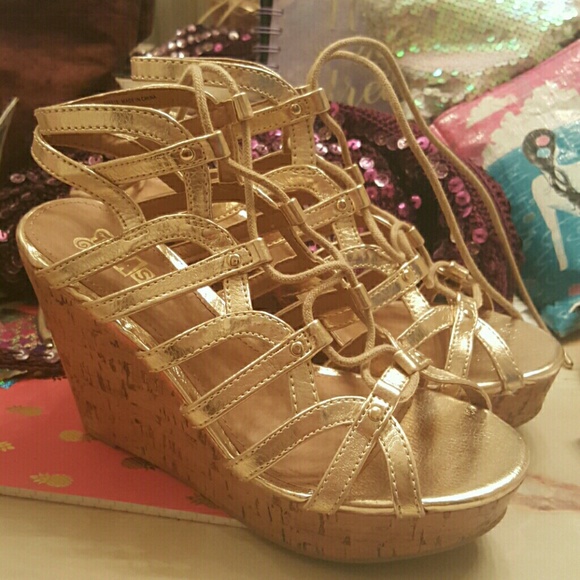 Size 5 Gold Lace Up Wedges | Poshmark gold wedges size 5