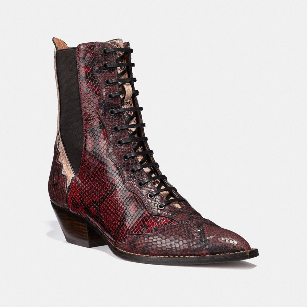 COACH: Lace Up Bootie With Patchwork Snake coach snakeskin boots