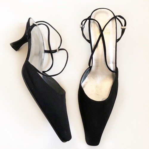 Black Satin Mid Heel Womens Shoes Open kitten heels size 8