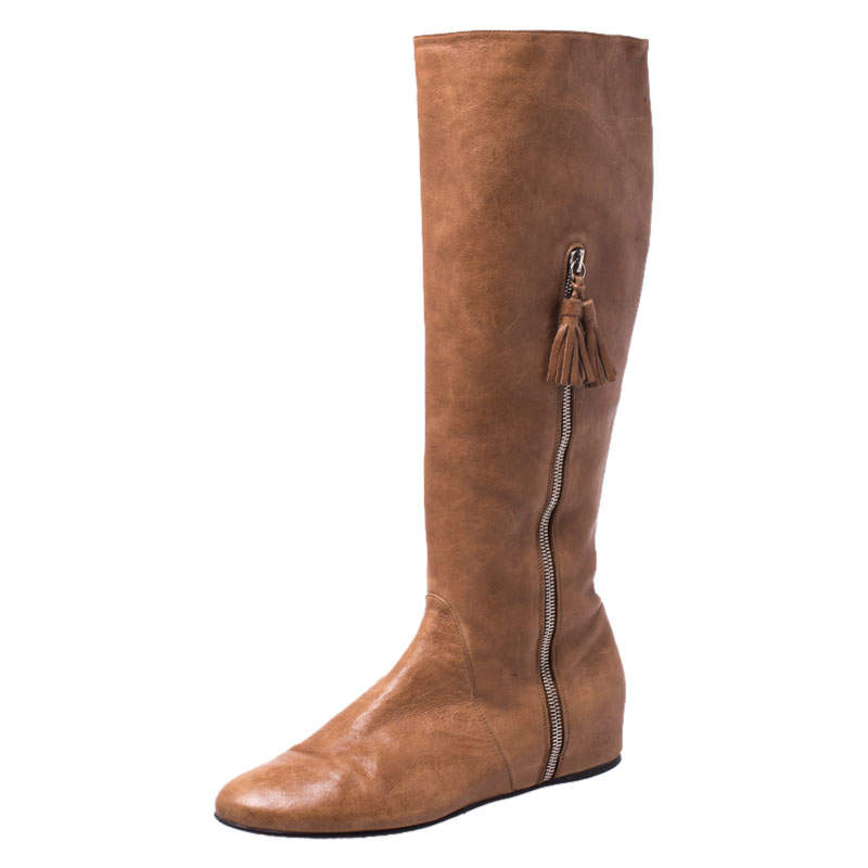 Stuart Weitzman Tan Tassel Zip Knee tan stuart weitzman boots