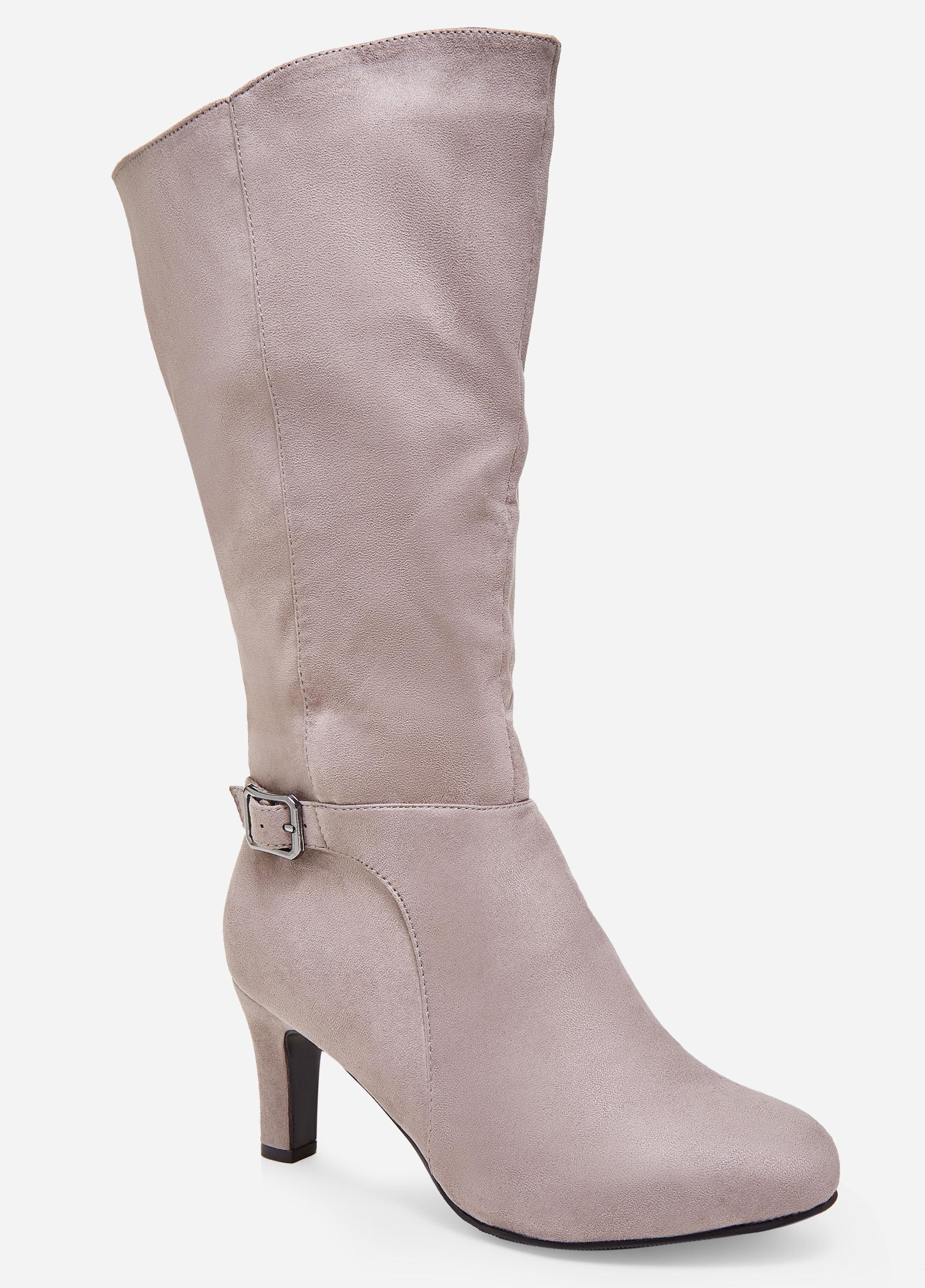 Ashley Stewart Sole Lift Faux Suede grey wide width boots
