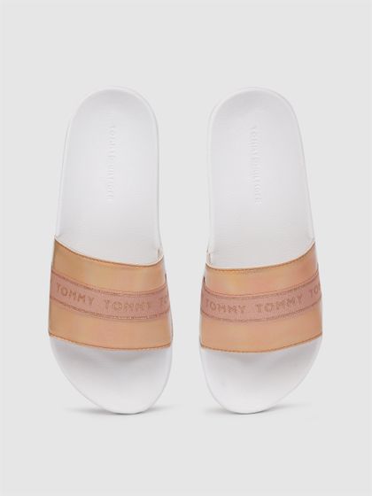 gold tommy hilfiger sliders