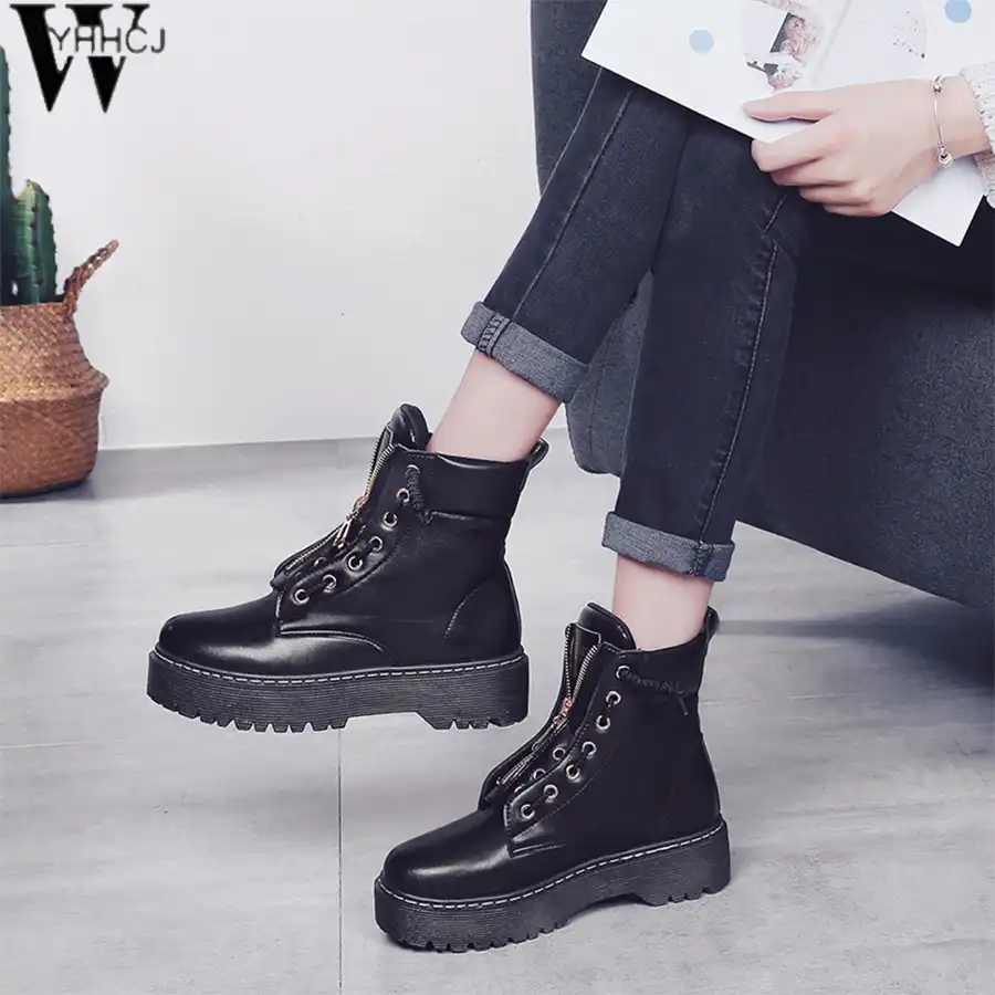 WTAB 2018 New PU Leather Ankle Boots ankle boots fall 2018