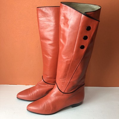 red leather knee high flat boots