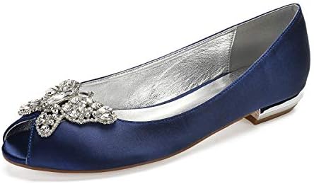 LIANYUNNEIYI Womens Comfort Shoes Satin navy blue peep toe flats