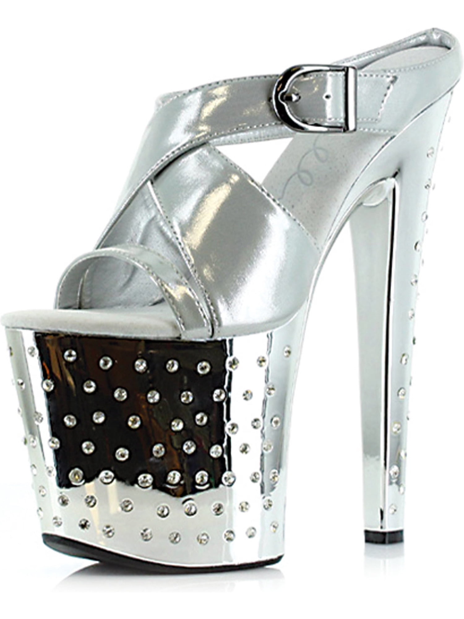 Shiny Slide on Strappy Sandals with 8 rhinestone encrusted heels