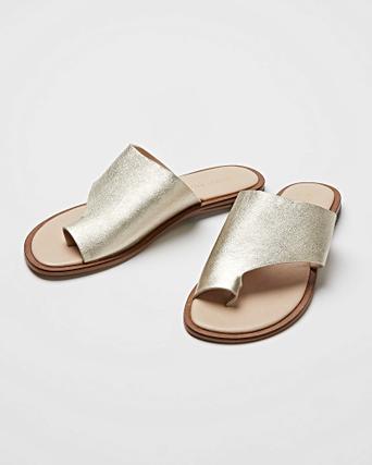 Metallic Gold Toe Mail Leather Mule mule flip flops