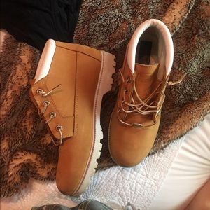 Light sandy coloured, low ankle cut timberlands cutting ankles