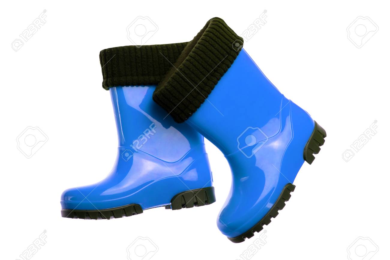 Pair Blue Rubber Boots.. Stock Photo children shoes