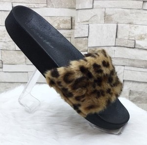 LEOPARD PRINT FLUFFY SLIDERS SHOES SIZE slip on fluffy shoes