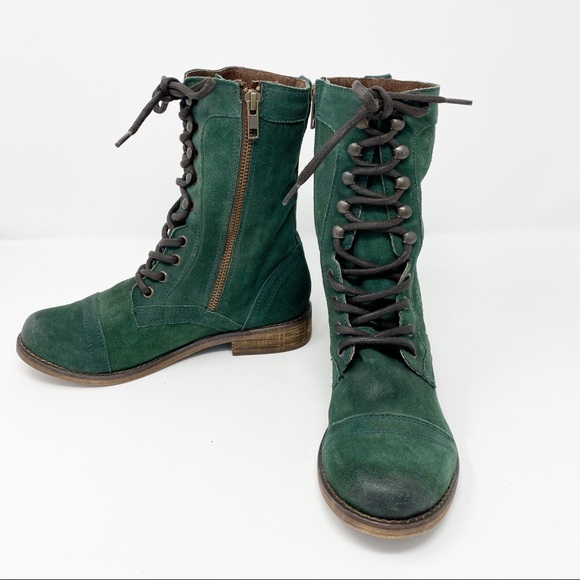 Green Leather Suede Lace Up Combat Boot skechers boots green